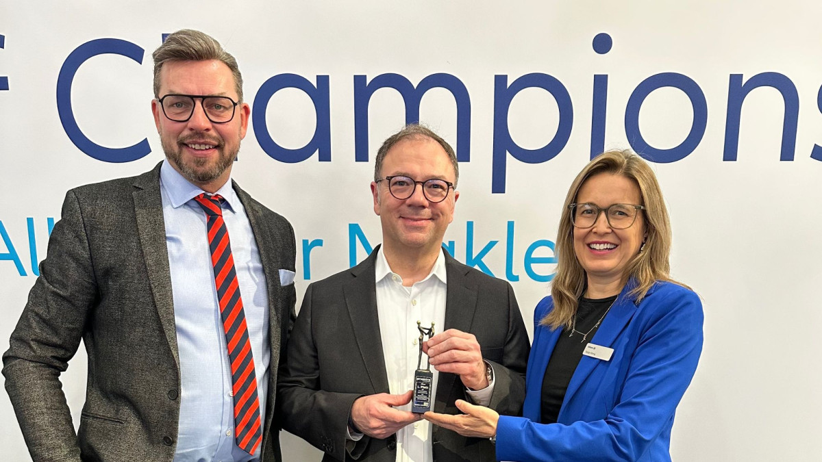 Die Allianz wurde beim Maklers-Lieblinge-Award in gleich sechs Kategorien zum Sieger gewählt: Private Rentenversicherung, EU, bAV, Pflege-Zusatz, bKV sowie Betriebsschließung. Tilman J. Freyenhagen (links), Geschäftsführer von Alsterspree, übergab die Auszeichnung an Tanja Koenig und Michael Bastian von der Allianz.